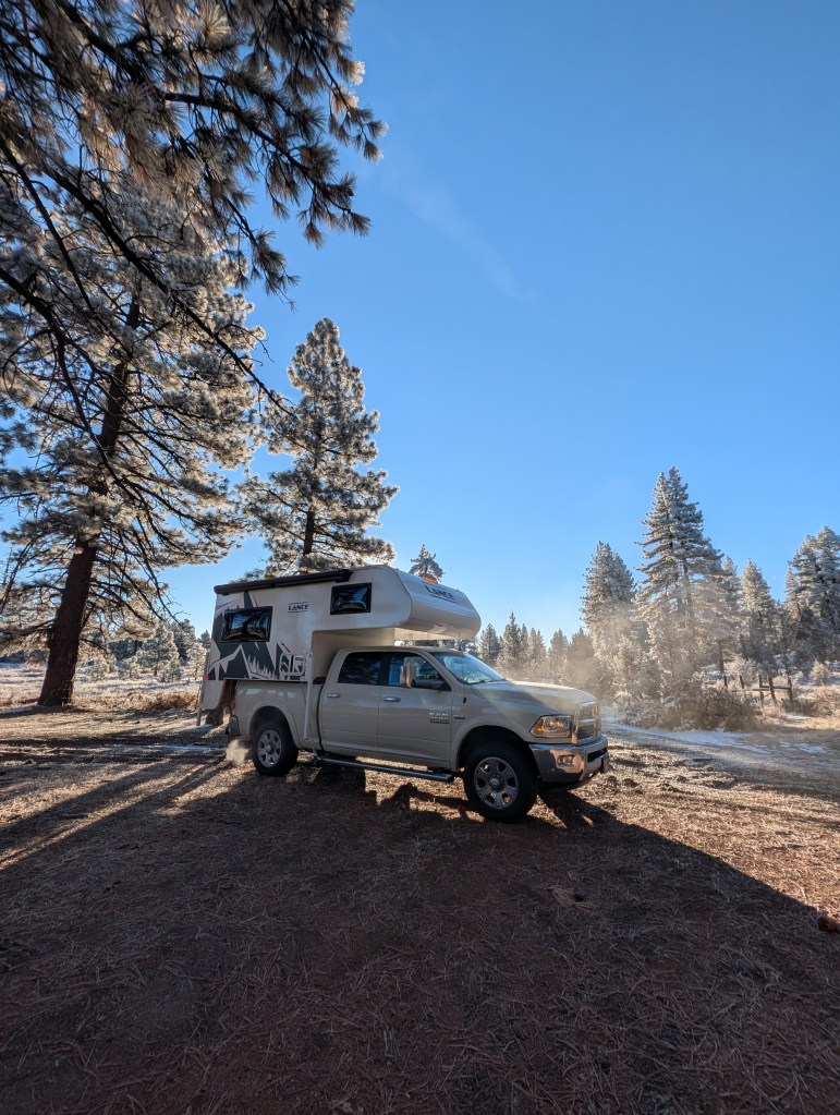 After six nights in Nevada with friends, we hit the road to head back to Oregon. We decided to take a different route home and spent one night at a free campsite on BLM land in Susanville, California. It was FREEZING and I was so incredibly thankful for a heated camper to sleep in that night!