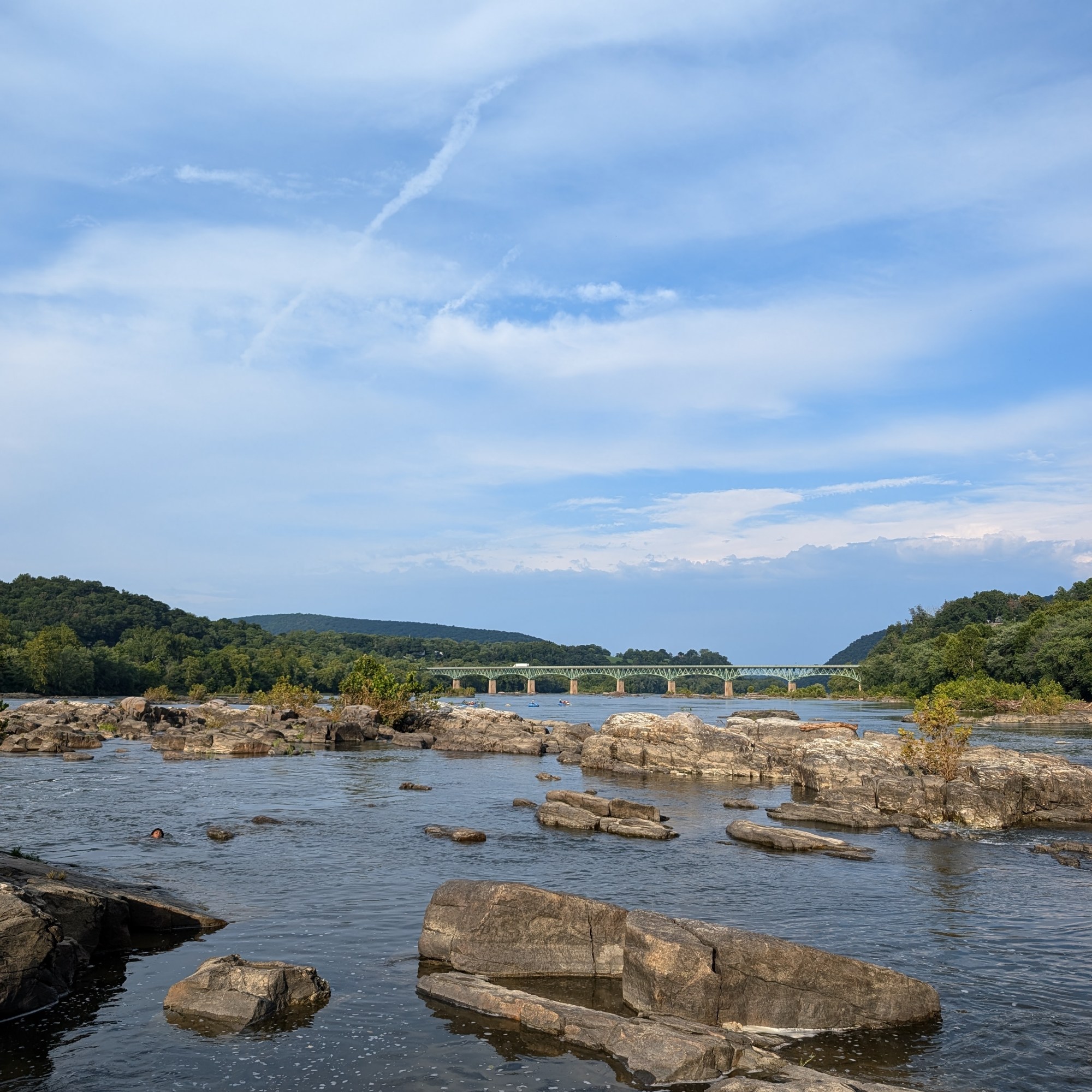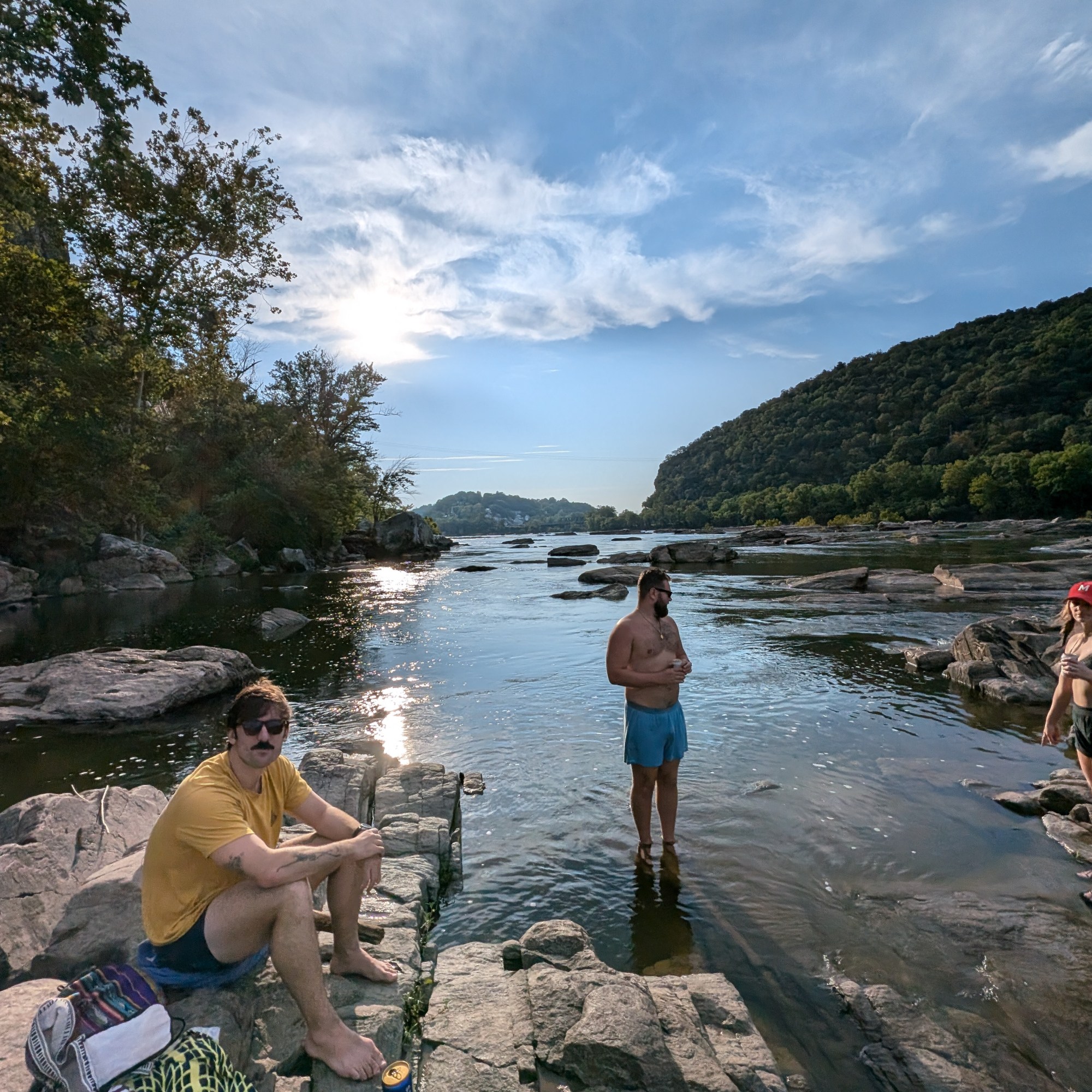 I love hiking near Harper’s Ferry year-round, but especially in the summer! While finding parking in the summer can be challenging, if you get an early start to the day you may have luck. There is so much to explore here: rich history, cute restaurants, a charming ice cream shop, and Harper’s Ferry Brewing—a fun brewery that offers incredible views of the Potomac. There are also several outfitters that offer guided raft and tubing trips! But the best part, in my opinion, is simply hanging on the rocks and cooling off in the river below.